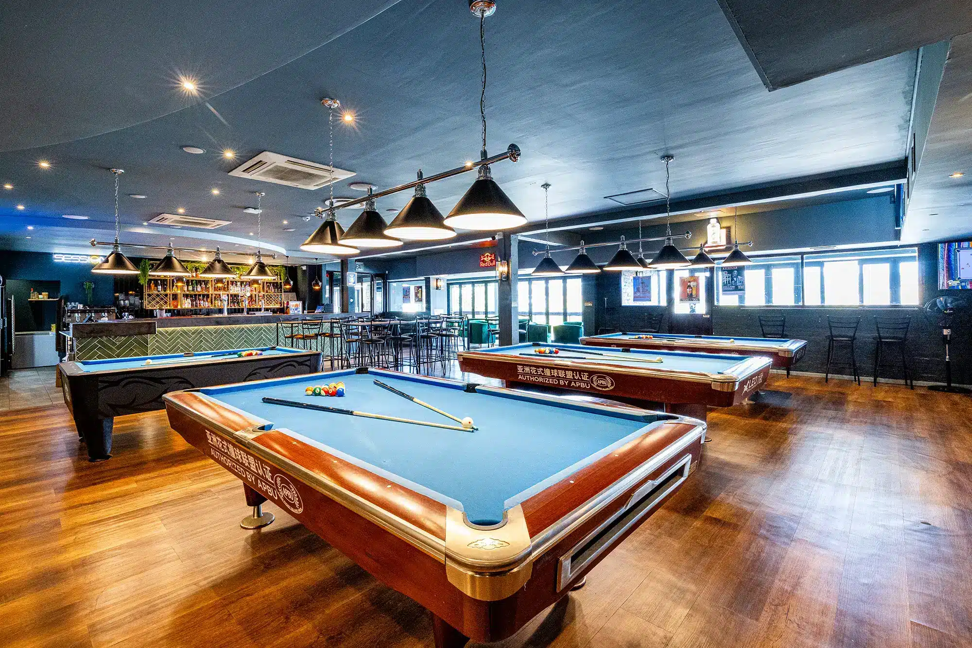 Formerly known as Chinese pool, it is a version of 8-ball player pool on a 9-foot nap felt pool table similar to a snooker table.